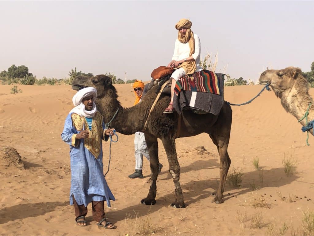 Unsere Karawane wird von Brahim geführt. Er hat jahrelang als Kamelführer andere Karawanen begleitet und konnte so einen großen Erfahrungsschatz sammeln. Seit einiger Zeit leitet er nun selbst die Karawane mit Verantwortungsgefühl und großer Freude.